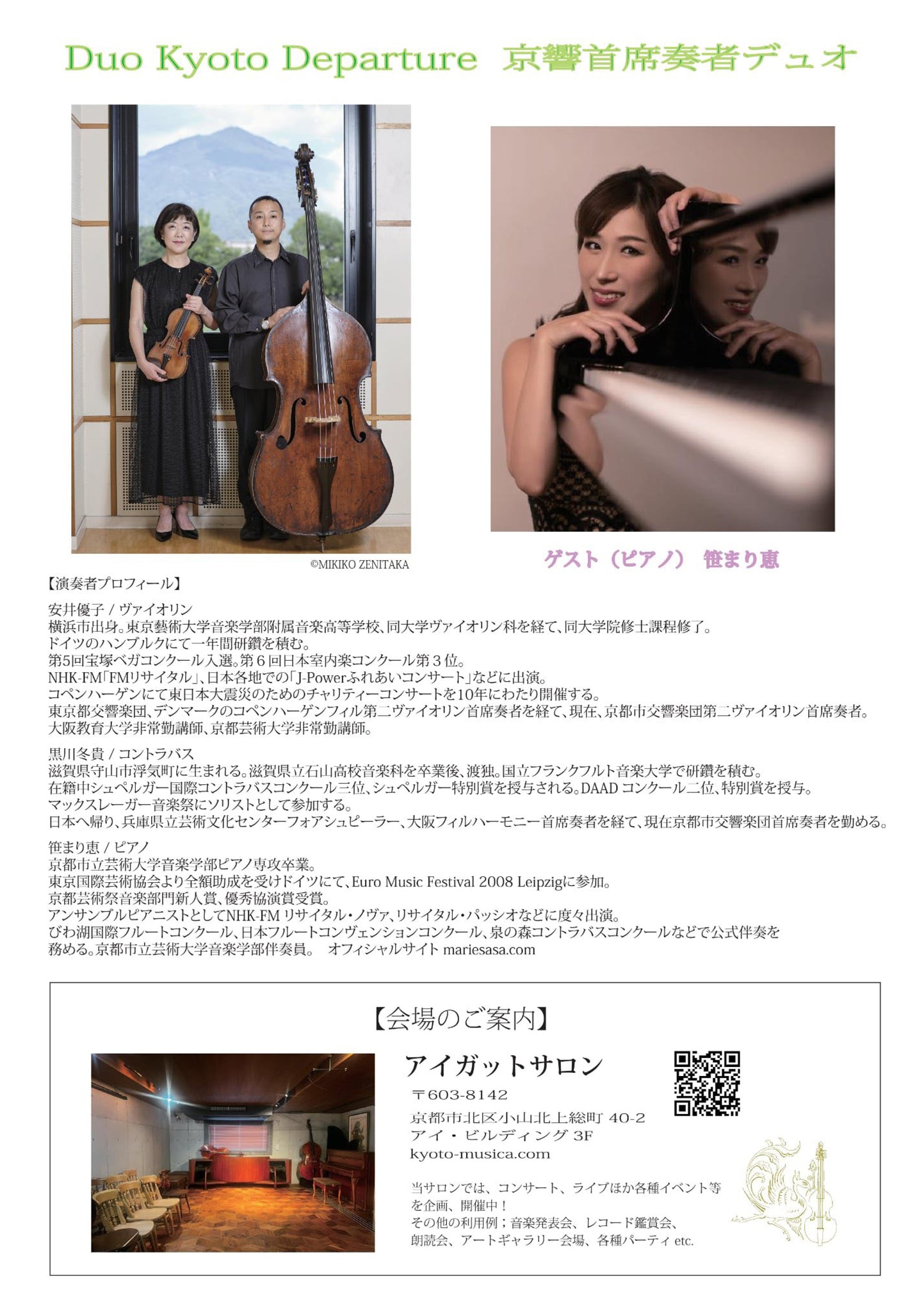 Duo Kyoto Departure Vol.4 安井優子 violin + 黒川冬貴contrabass ゲスト笹まり恵 piano